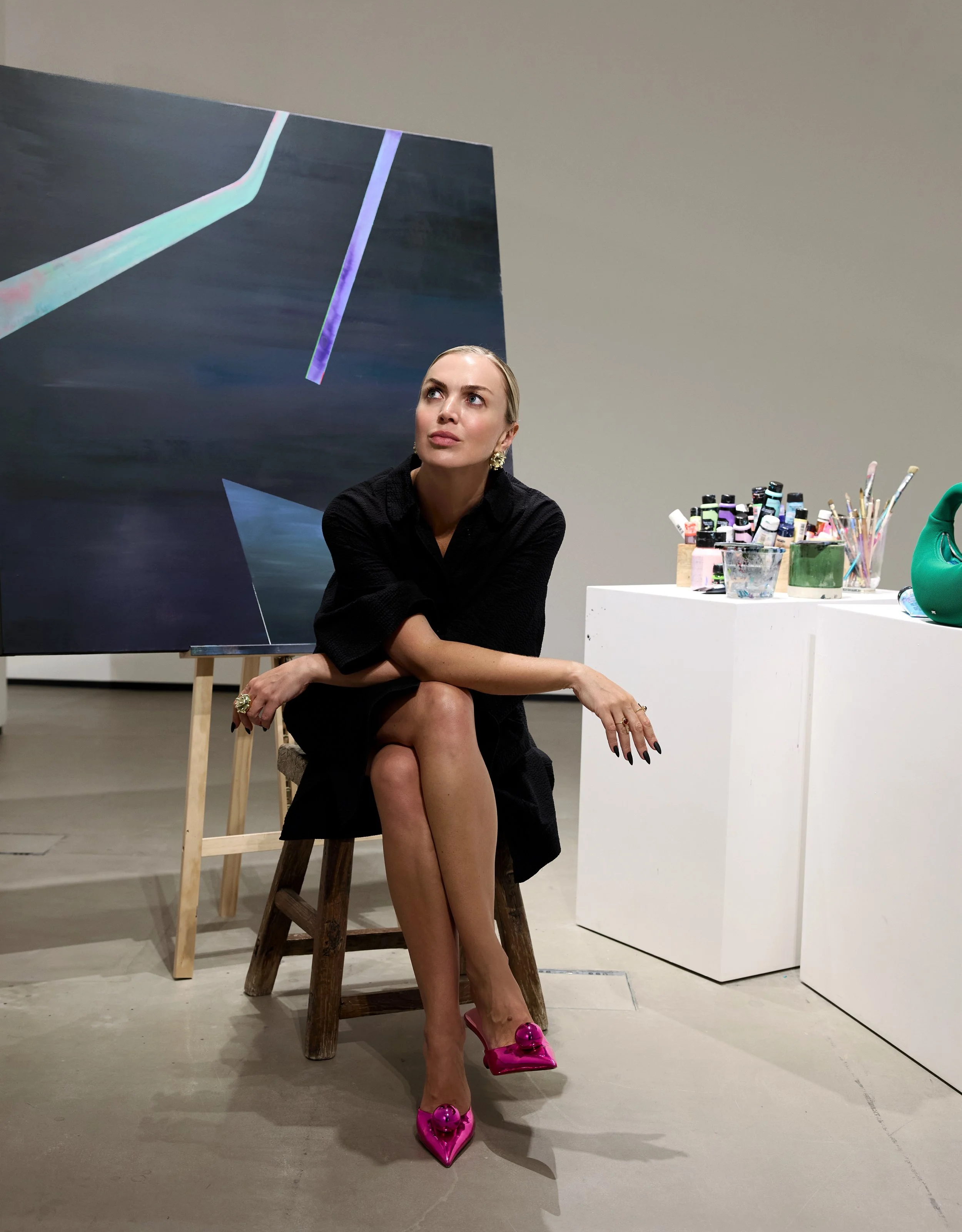 Her elongated, often androgynous figures inhabit minimal, dreamlike spaces, suspended between performance and authenticity, control and surrender. Through these psychological arenas, Brandt examines the fragile balance that shapes human consciousness.